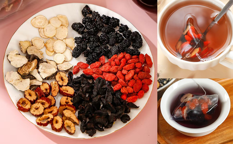 - TASTE AND FLAVOR: Ginseng five Treasure Tea Offers A Smooth, Refreshing Taste That Blends The Natural Sweetness Of Red Dates And Mulberries With The Earthy Richness Of Ginseng And Polygonatum; This Balanced Flavor Profile Makes It A Delicious And Enjoyable Kidney Tea For Any Time Of Day. The Color Of The Tea Soup Is Deep And Full Of Essence Ingredients